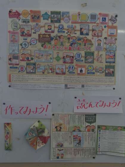 学習後、いつでも学べるように、廊下にこのおりがみとすごろくを掲示をしています。