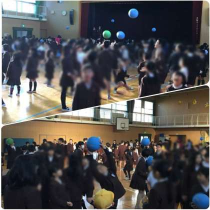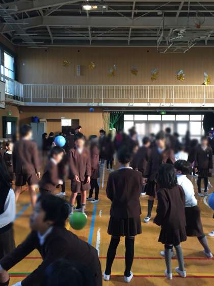 今日の集会は、ボールゲームでした。
