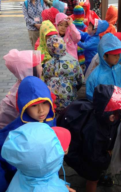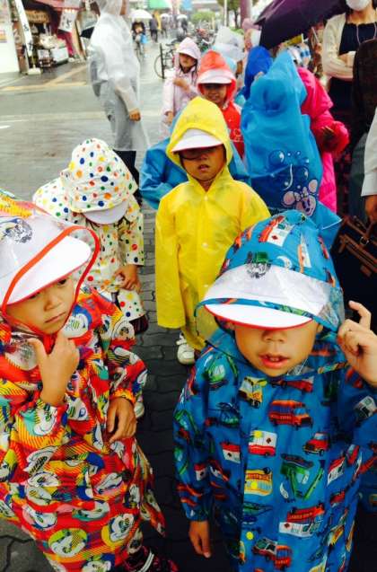 お弁当の後に、雨が降ってきてしまいました。すぐに合羽を着て帰りました。