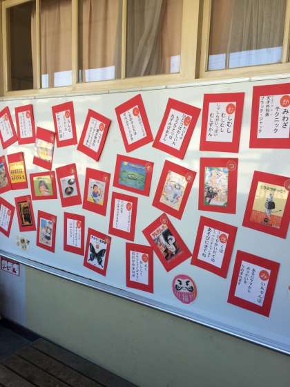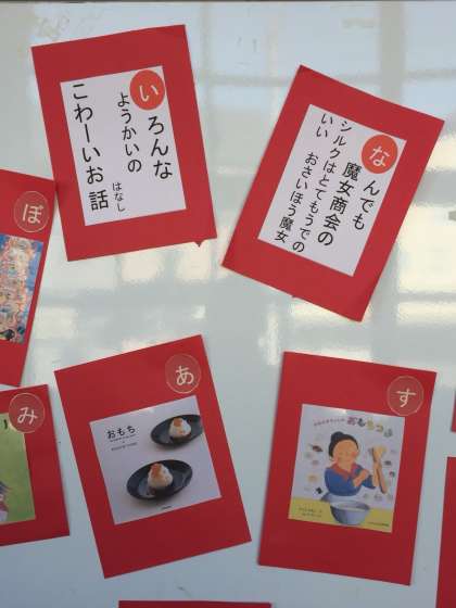 本の題名や、本の中身がそのカルタでわかるようになっています。