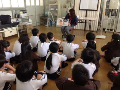 保健の先生に、インフルエンザについての絵本を読んでいただきました。