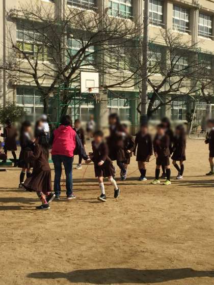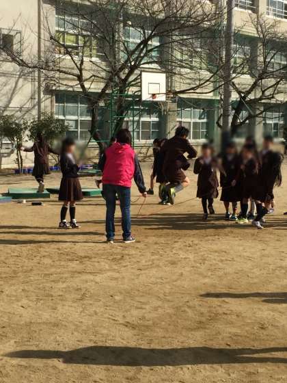 休み時間、今朝も気温がかなり低い状況でしたが、元気に外で遊んでいます。