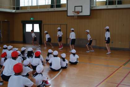 そして体力テストの反復横跳びと上体起こしです。6年生に手本を見せてもらいながら、各種目取り組みました。