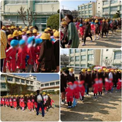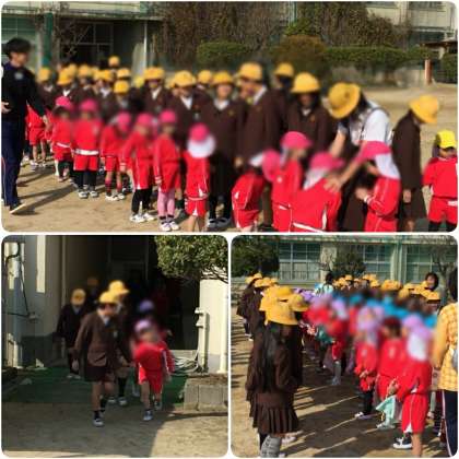 訓練終了後、高学年の子どどもたちは、幼稚園の子どもたちと挨拶をして、笑顔でお見送りをしました。