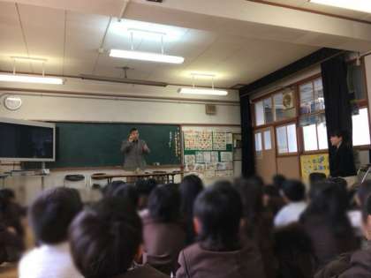 2年生は、手話をつかって生活しておられる方から話を聞いて、