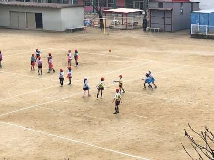 元気いっぱいコートを走り、楽しく相手のことを考えながら試合を行うことができました。