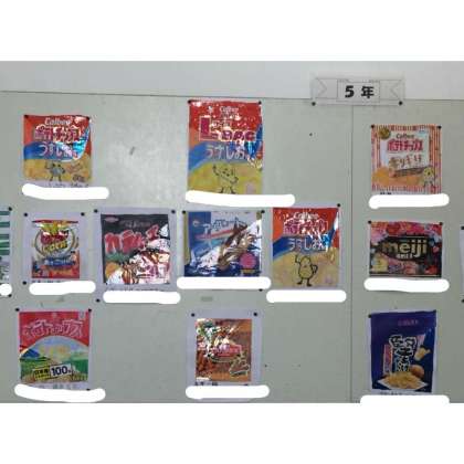 半分は本物のパッケージで、残り半分は色鉛筆のみで、本物に似せて作り上げました。