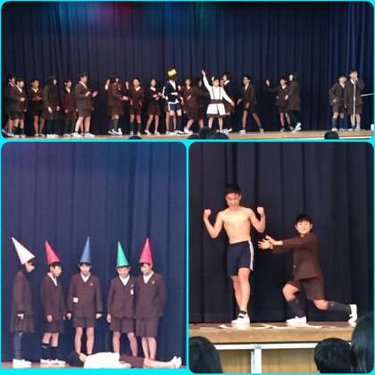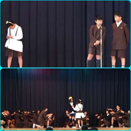 6年生は、6年間の思い出を語りながら、劇「シンデレラ」とミュージカル「バブリーダンス」を演じ、寸劇やダンスを入れてアレンジをして、みんなを和やかな雰囲気にしました。