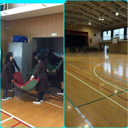 5年生は、卒業式に向けて、講堂の会場準備をしました。