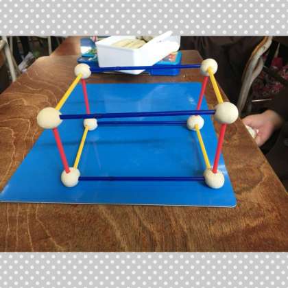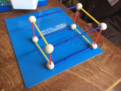 今日は直方体の辺と頂点の数を学習するために、ストローとねんどを使って、模型を作りました。