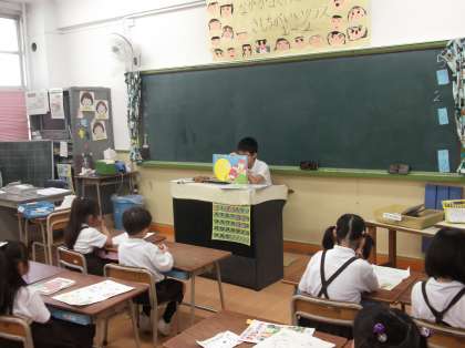 5月28日(水) 毎週水曜日の朝の時間(8時30分〜8時40分)に、図書委員会の児童が1〜3年生に紙芝居を読みに各教室へ行きます。どの学年も、紙芝居をとても楽しみに待っています。図書委員会の児童は、何度やっても緊張しますが、上手に読めるようになりました。