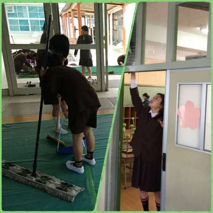 本日、6年生が明日の入学式の準備で、教室や講堂の掃除をしてくれました。