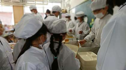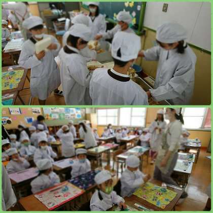 1年生にとって、今日が初めての給食です。