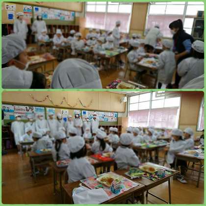 1年生は、準備を手伝ってくれた6年生にお礼をいい、その後は、ゆったりと食べました。