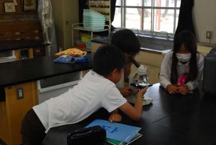 5月30日(金) 5年生の理科で、顕微鏡を使ってメダカを観察しました。もうそろそろ生まれるころかな。という話をしながら観察していると、「先生、生まれた!」と一人の児童が!みんなが集まり、見てみると卵からかえってメダカが誕生していました。