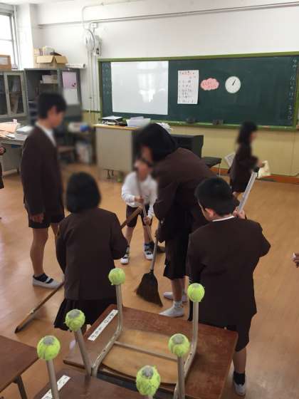 6年生にほうきの持ち方や、掃き方など、一つ一つ丁寧に教えてもらいながら、掃除をしていきました。