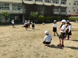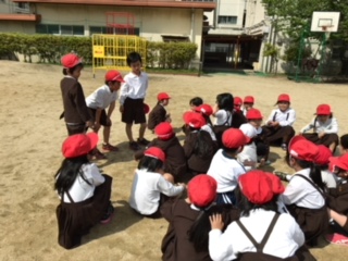 「先生、みんなあそびはいつしますか」みんなで遊ぶのをとっても楽しみに待っている子どもたち。みんなで話し合って決まったのは、ふえおに。広い運動場を力いっぱい走り回っています。