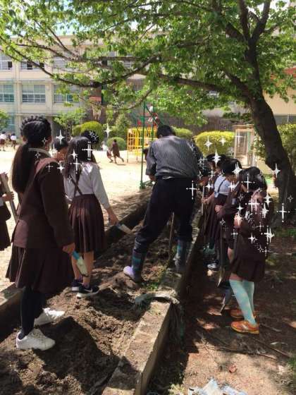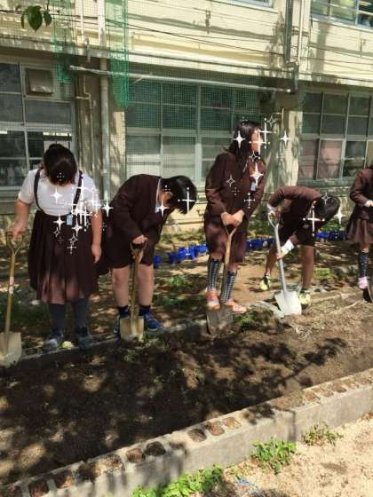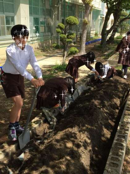 花壇として、再び使えるように、環境委員会のこどもたちが、土を耕して進めてくれています。