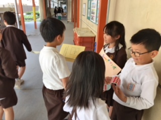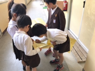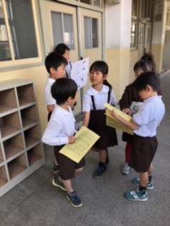 今日は、1年生に2年生が学校を案内しました。2人1組で説明と案内係になり、1年生の子どもたちに、学校のいろいろな教室や場所について知らせました。活動後の2年生の感想では、「1年生のみんなが楽しかったといってくれたことがうれしかった」「1年生の笑顔が見られてよかった」と書いていました。自分たちが楽しむだけでなく、人を楽しませることにうれしく感じてくれたことがとてもうれしかったです。