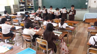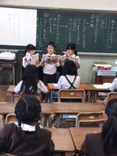 「風のゆうびんやさん」のまとめの音読。一番好きな場面を一人ずつ、人物のようすがわかるように読みました。選んだ場面・理由が一人ひとり違うのも聞いていてとても興味深かったです。また、様子を表す言葉や会話文を工夫して読んでいると思わず拍手が起こりました。