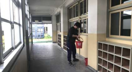 避難をはじめるのと同時に、理科室へ初期消火を先生にしてもらいました。