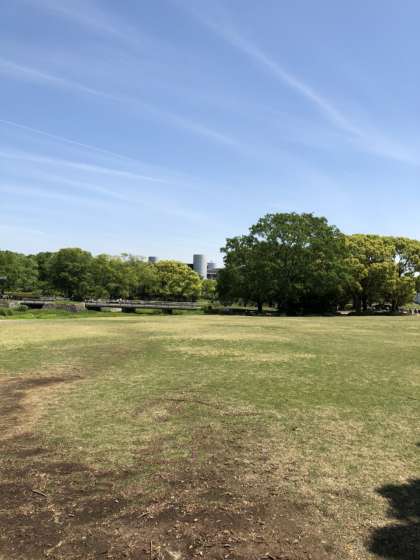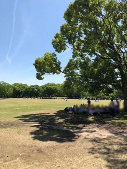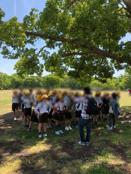 学校から持ってきたボールやドッジビーであそんだり、自然を楽しんだりしています。