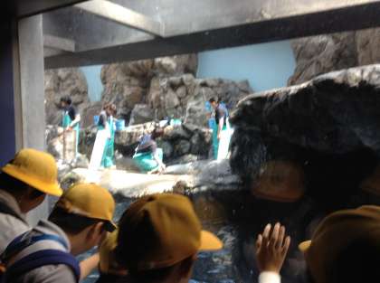海遊館では、ジンベイザメの大きさに驚きの声をあげたり、