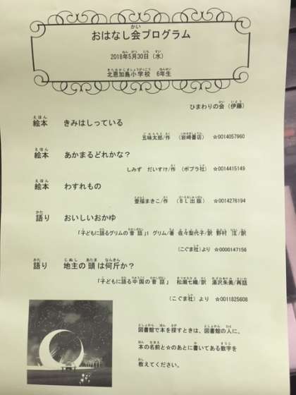大正図書館のボランティアの方に、お話会をしていただきました。