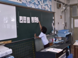 リズム打ちの練習をしました。今日は、3拍子のリズムを作る練習をしました。作ったリズムをみんなで打ちました。