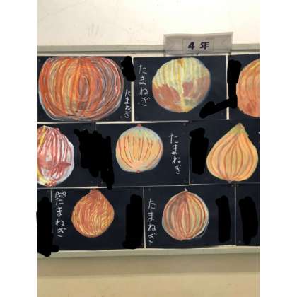 絵の具ので、細かな部分を表現して、玉ねぎをかきました。