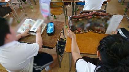 一時間目の始まる前、静かに読書をしています。