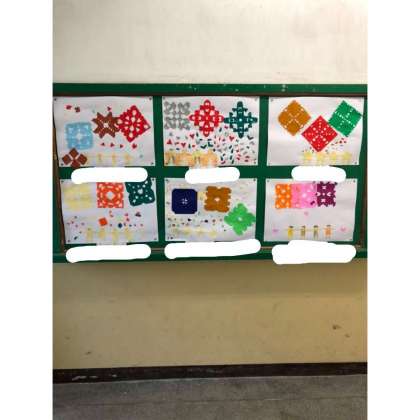 図画工作科で、紙を折って、切って…して、模様を作りました。