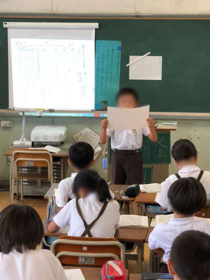 国語科で、はじめ、なか、おわり…の組み立ての順を考えて文章を作り、スピーチをしました。