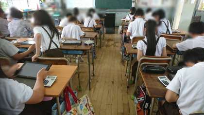タブレット端末を使って自分が作った問題を提示し、みんなで答えを出します。