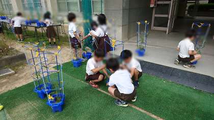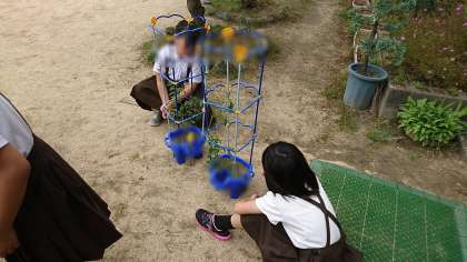 水やりの用意をして、まわりに生えた余分な草をとって、また、大きくなあれと願いをこめて、鉢を置きました。