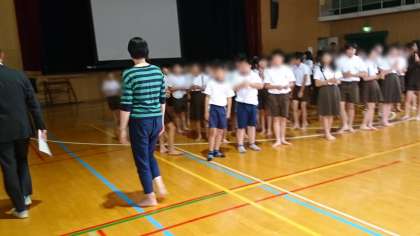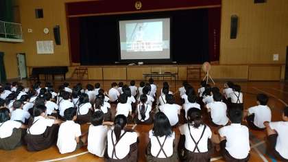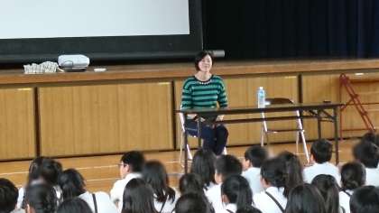 前半は、千葉さんってどんな人なのか、知らない子どももいてたので、DVDで学びました。本人からは、なぜ、水泳を始めたのか?悔しい思いをしたこと、努力したことなど、語っていただきました。