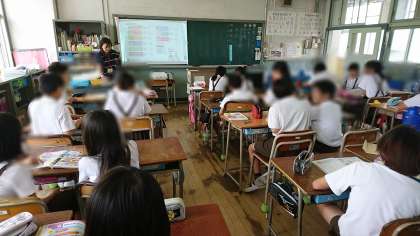 今日の英語は、アルファベットを覚えられるように、デジタル教科書と照らし合わせて、学習しています。