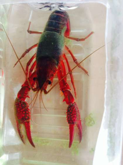 先日、みんなで釣ったザリガニを両クラスとも教室で育てています。