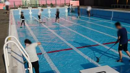 明日からも、気持ちよくみんなが入れるように、ゴシゴシこすって、清掃しました。