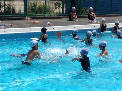 先週よりプールが始まりました。まだ水は少し冷たいですが、子どもたちは、元気に活動しています。