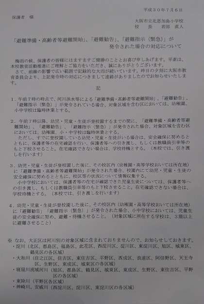 「避難準備・高齢者等避難開始」、「避難勧告」、「避難指示(緊急)」が発令された場合の対応について
