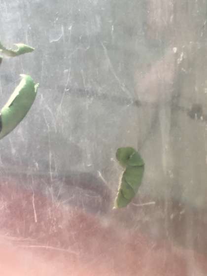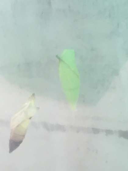 サナギは葉にそっくり!いつチョウになるかなぁ、とワクワクしながら毎日観察していました!