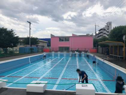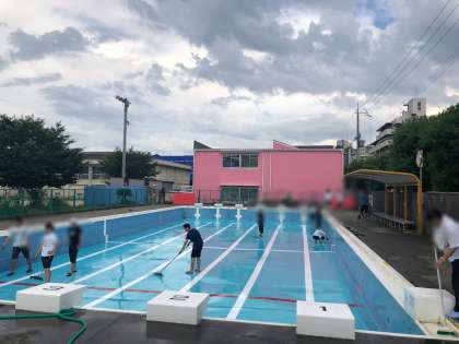 月曜日の放課後、教職員でプール清掃をしました。