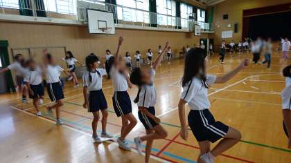 リズムにのって、元気よく声もあげながら、踊りました。