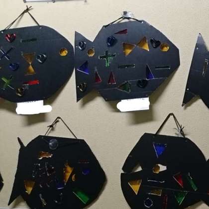カッターナイフでボール紙をカットして、おしゃれな魚を作りました。