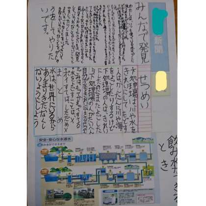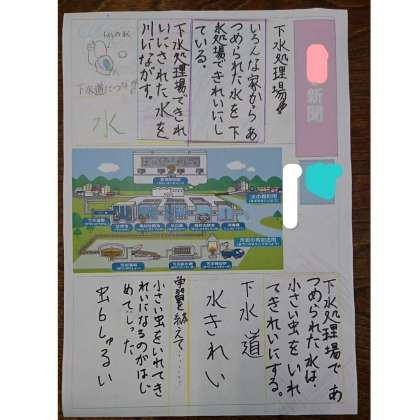 社会科で学んだ「水の仕組み(下水処理)」について、一人ずつ新聞にまとめました。
