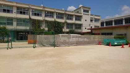 運動場の一部(第一校舎側)が工事のため、使えなくなっています。