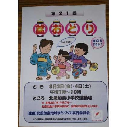 盆踊りは、3・4日に北恩加島小学校で実施予定です。