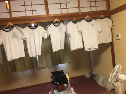 上手に扇風機を使い、体操服を乾かしている班もあります!!