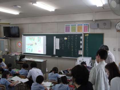 北恩加島小学校にも、来年度(平成27年度)にタブレット端末が40台導入される予定です。それに向けて、先行導入されているICT活用事業のモデル校に昨年度より研修に参加しています。6月27日(金)も堀江小学校の研修会へ参加してきました。